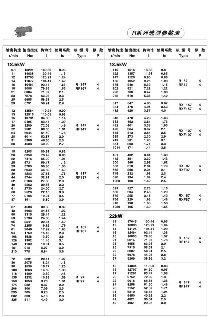 性能、特点: R系列斜齿轮减速机,结合国际技术要求制造,具有很高的科技含量,节省空间,可靠耐用,承受过载能b高,功率可达132Kw,能耗低,性能优越,减速机效率高达95%以上,振动小,噪音低,节能高,选用优质锻钢材料,钢性铸铁箱体,齿轮表面经过渗碳淬火,经过精密加工,确保轴平衡度和定位轴承要求,形成齿轮转动总成的减速机,配合各类电机组成机电一体化,完全保证了产品的质量。 ]